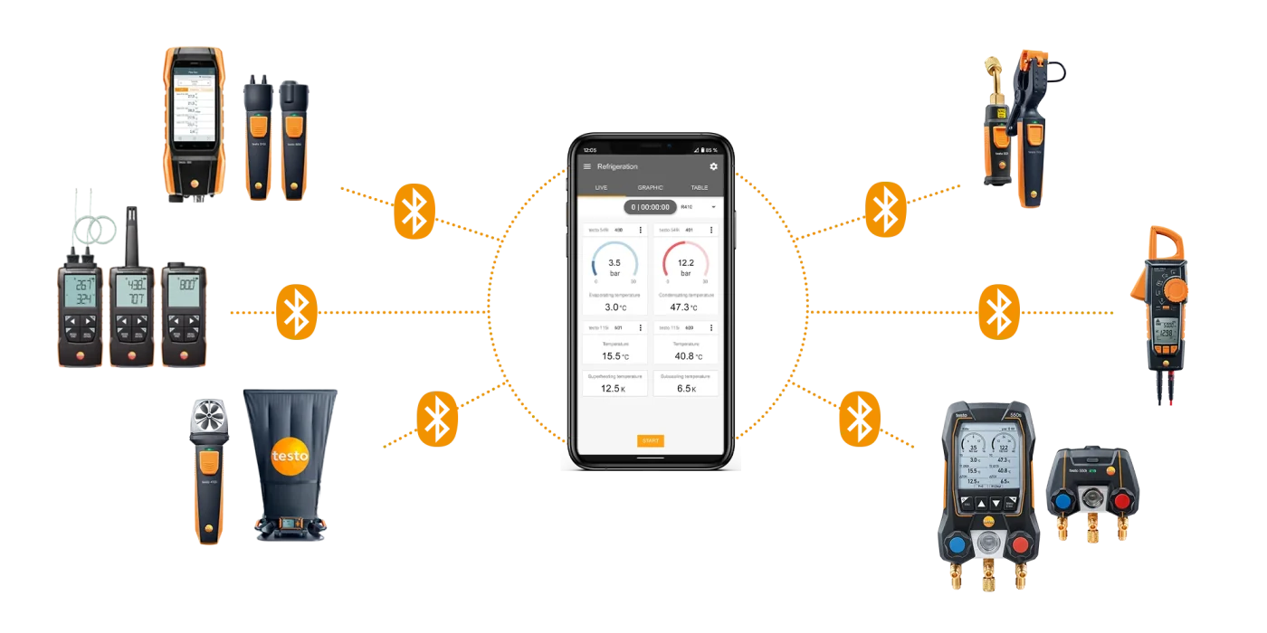 testo 560i set – Bluetooth’lu® dijital soğutucu terazisi ve akıllı valf