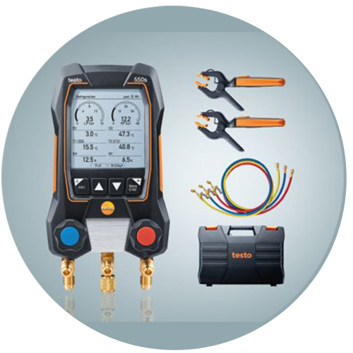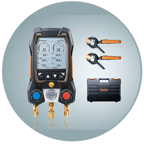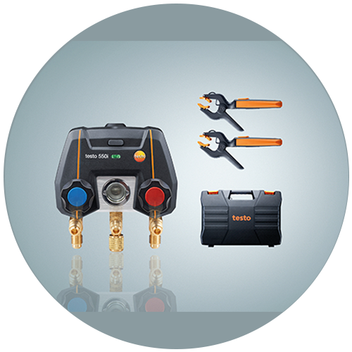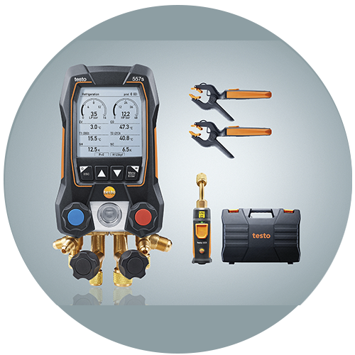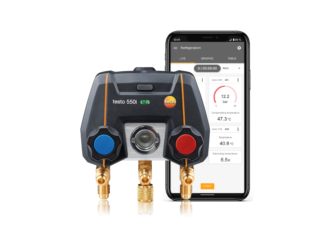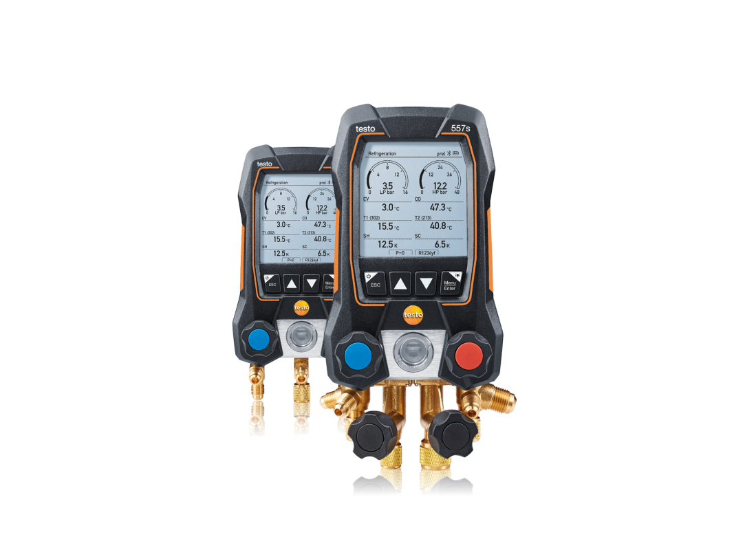 Dijital manifoldlar testo 550s ve testo 577s, soğutma ve klima sistemleri ile ısı pompaları üzerinde her zamankinden daha hızlı ve daha kolay ölçümler yapar. Büyük ekran, tüm ölçüm verilerini bir bakışta gösterir ve sonuçların analizini basitleştirir. Ölçüm menüleri, ölçüm boyunca size adım adım yol gösterir ve aşırı kızdırma, basınç düşüş testi, sızdırmazlık testi veya tahliye gibi önemli tesis parametrelerinin otomatik olarak belirlenmesine izin verir.