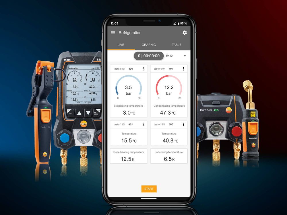 Testo Smart Uygulaması ile, akıllı telefonunuzu soğutma, klima ve ısı pompalarını içeren tüm uygulamalar için mobil, çok işlevli bir komuta merkezine dönüştürürsünüz.