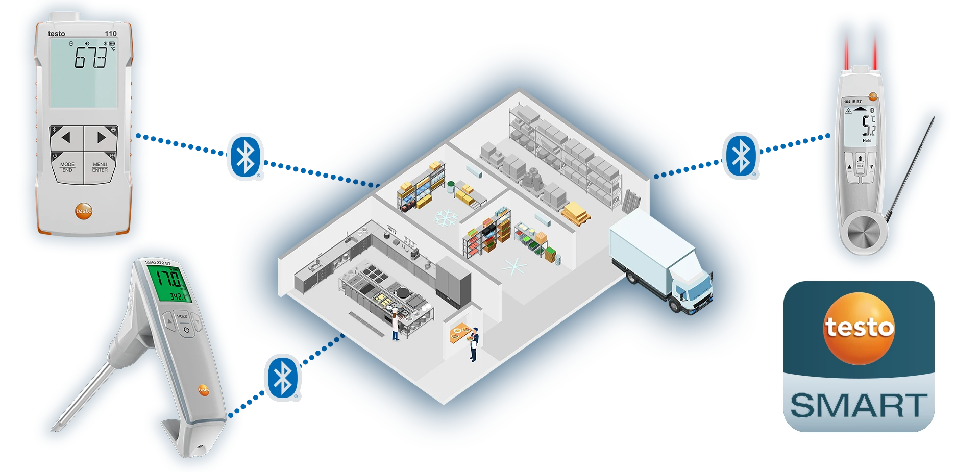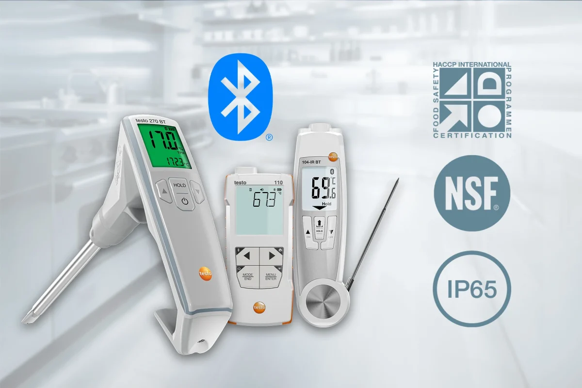 Testo’nun Food BT serisindeki akıllı gıda ölçüm cihazları, gıda sektöründeki kalite güvencenizi her zamankinden daha güvenli, daha verimli ve daha kullanışlı hale getirir: Sezgisel kullanım, hassas ölçüm, kesintisiz dokümantasyon ve testo Smart App uygulaması aracılığıyla tüm ölçüm değerlerinin kolay izlenebilirliği, mükemmel kalite yönetimini sağlar.