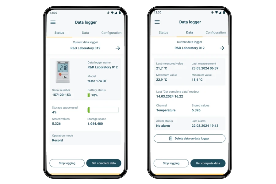 testo Smart App uygulaması aracılığıyla tüm Food BT-Line portföyüne tam bağlantı sayesinde ölçüm prosedürlerinin mükemmel etkileşimi