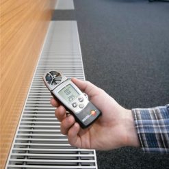 testo 410-2; entegre nem ölçümü ve NTC hava termometresi ile pervane anemometre, koruyucu başlık, batarya ve kalibrasyon protokolü ile birlikte