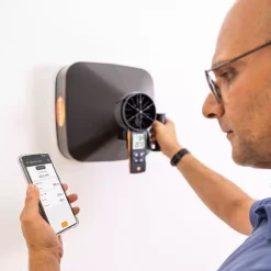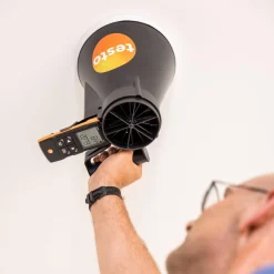Ayrıca App, yalnızca ölçüm cihazını konfigüre etmenize destek olmakla kalmaz, ölçülen değerlerin görüntülenmesini, saklanmasını ve dokümantasyonunu üstlenir; aynı zamanda akıllı telefonunuzu ikinci bir ekrana dönüştürür. testo 417 Set 1, plaka çıkışları ve havalandırma ızgaraları için iki ölçüm hunisi içerir. Bunlar pervane anemometreye kolayca takılabilir, ve çok çeşitli boyutlara ve biçimlere sahip çıkışlarda ölçüm yapılabilmesini sağlar.